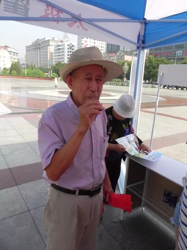 圖為:市民在現(xiàn)場免費品嘗山西同仁康大藥房提供的太極藿香正氣口服液