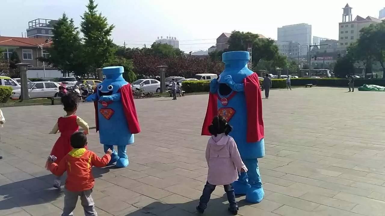 藍(lán)瓶超人與小朋友們一起互動(dòng)