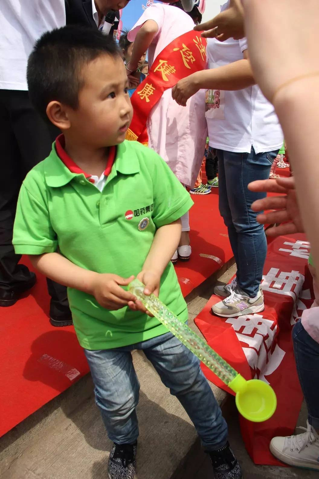 孩子們免費(fèi)品嘗藍(lán)瓶鋅鈣